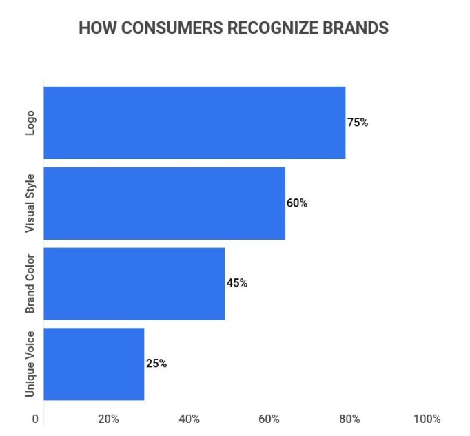According to logo statistics 2023, 75% of consumers identify a company solely by its logo and 42% of consumers believe that a brand logo helps them understand what the company is all about.